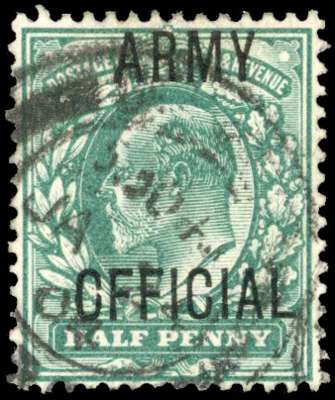 ARMY OFFICIAL: KEVII 1902-03 ½d blue green, cancelled by double-ring ds showing ‘C' for ‘O’ in 'OFFICIAL’ variety. Fine and scarce. SG O48 var, Spec MO19q