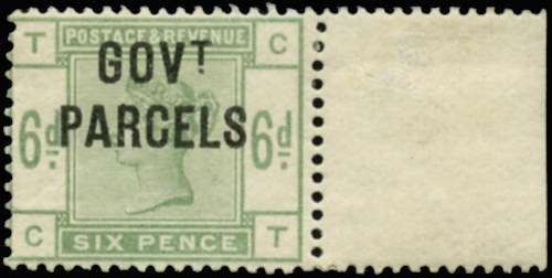 Great Britain 1886 6d Dull green (Govt. Parcels). Very fine unused o.g. right hand marginal example of this diffic…