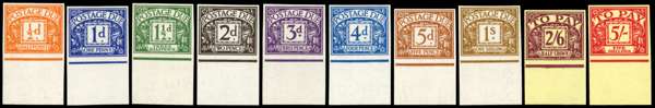 1955-57 ½d-5s Postage Due Imprimaturs. Very fine unmounted o.g. bottom marginal set of ten imperforate imprimaturs, handstamped "NPM IMPRIMATUR" on reverse. Ex N.P.M.Archive sales.