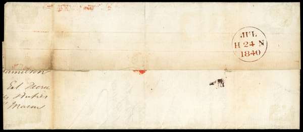 1840 cover franked by 2d bright blue (BG) red MC