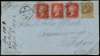 1862 Overseas Mail. Very fine envelope sent from Exeter to Seetapore, India bearing three 1d rose-red (SG40, PL.39) and a 9d Bistre (SG86) all four stamps neatly tied by crisp black Exeter "285" duplexes for MR 2 1862. Additionally endorsed in manuscript at top left "Via Marseilles". Backstamped by a London transit cds for MR 3 1862, a Bombay transit cds for MR 27 1862, and a Seetapore arrival cds for AP 3 1862. Slight corner fault at bottom right of 9d, nevertheless an extremely attractive overseas destination cover. Cat £1200.