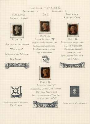 1840 1d black group of four from Plate 1b, fine used, all with varieties, mostly four-margined, with EJ (re-entry), NC (retouched check letter), RK (recut K) and SC (marks in POSTAGE), the latter on piece, touched at NE. SG 2 (4 stamps).