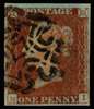 1841 1d red-brown Plate 11. Very fine used four-margined example lettered MI, neatly cancelled by a crisp strike of the distinctive Wotton-under-Edge MC in black. A lovely example of this rare distinctive MC. Spec. AS74ue. Ex Buranasombati. 1986 RPS Certificate