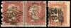 1855 1d red two examples of the scarce perforated 7; SG 17 the left stamp in a pair lettered HA-HB (HA, the variety, fine, HB creased) used Inland Office 20, and a good used single MA with provincial numeral. Spec.C1m. Cat. £1,700