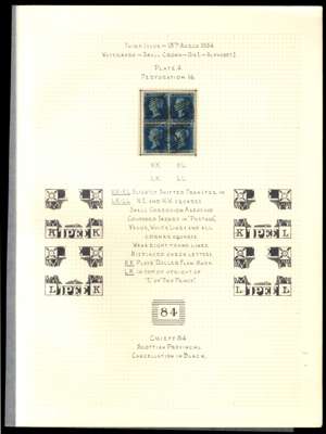 1854 fine used block of four 2d deep blue Plate 4 lettered KK-LL, cancelled 84 numeral of Crieff. KL with a short corner perf. SG 19. Cat. £1,500