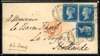 GB 1858 2d blue Plate 4 pair used with Plate 5 on cover