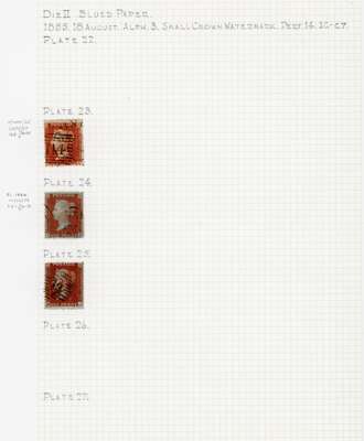 1856 1d red, the scarce Die II Alphabet III Small Crown issue from Plates 23 GE, 24 TH and 25 HJ, fine used on album page. Scarce group. Spec. C7. Cat. £2,950