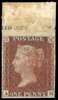 1856 1d red Die II from Reserve Plate 20 AH imprimatur, four-margined top marginal with inscription. Crease along top frameline of stamp where folded and some loss of inscription from hinging. Inverted watermark. This plate not issued. Very rare. 21 stamps were removed from the imprimatur sheet. Spec.C7 Cat. £1,800