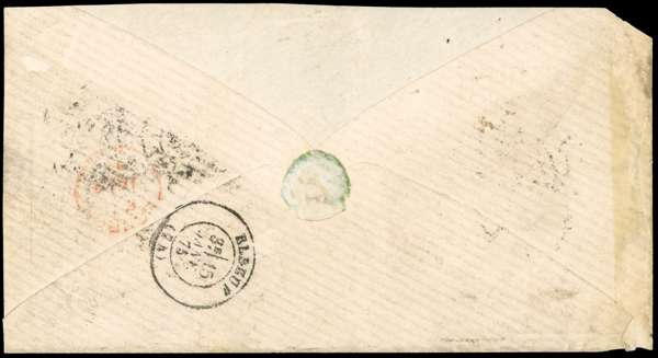 GB Used Abroad; Ecuador. 1874 envelope to France (reduced and opened at top and right, no backflap), bearing two examples of 1d rose-red Plate 138 (not listed in Part 1) and 1s green Plate 9, each tied by partially faint but identifiable C41 numerals of Guayaquil. Sent via Panama and Southampton, various markings including Panama-Transit cds, accountancy mark, Calais transit and handstruck '90'. A busy cover and rather attractive, despite the truncations. SG Z3, Z28.