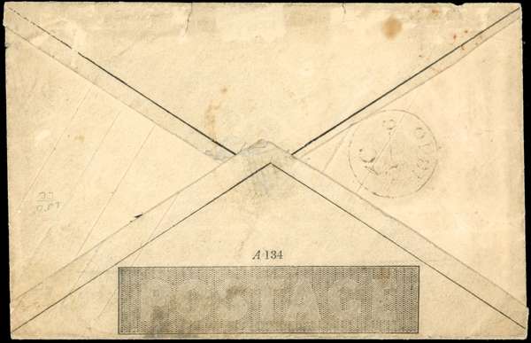1840 1d Mulready envelope Forme 1, Stereo A134. Sent from London to Congleton, cancelled with a fine red MC, backstamped London MY 6 1840. Peripheral faults and some soiling; a rare ‘First Day’ use. SG ME2, £18,000.