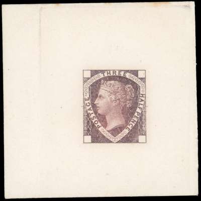 Great Britain 1870 1½d Die proof colour trial for ½d stamp SG DP55