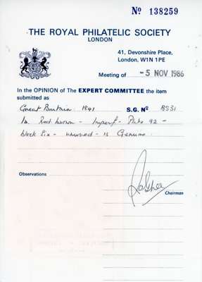 GB 1841 1d red-brown, Plate 92 mint block