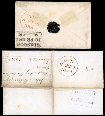 GB: POSTAL HISTORY: 1841 1d red-brown, two covers from Edinburgh tied by black Maltese crosses