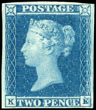 GB: 1841 2d blue, Plate 3 (KE), close to good margins, mint