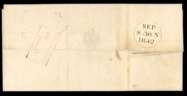 1841 2d blue, Plate 3 (RD), good to huge margins showing part of next stamp at top, on cover to Dumbarton, tied by distinctive Edinburgh black Maltese Cross, backstamped by despatch cds for SEP 30 1842 and orange arrival boxed hs for the following day. Several vertical filing folds, with one lightly affecting the adhesive. SG 14