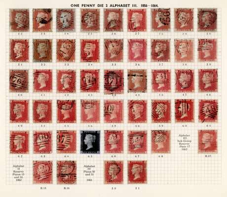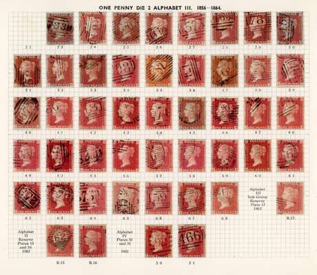 GB 1856-64 1d reds from Plates 22 - R17, the I Row