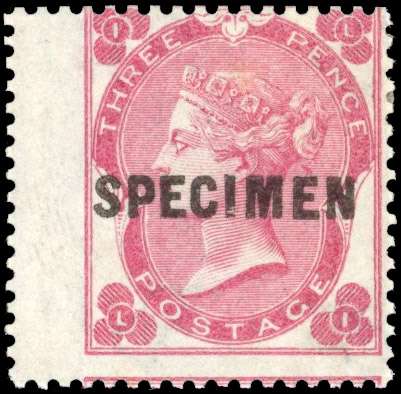 Great Britain 1862 3d deep carmine rose Pl. 2 optd "SPECIMEN" type 5, SG 75s