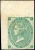 1862-64 1s Green Plate 2=3 (AI) , imperforate upper left marginal example, variety watermark inverted, mint, part o.g. with light staining, still very scarce. SG 91a,wi Spec. J102b cat £5,000+.