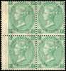 Great Britain 1865-67 1s green, Pl. 4, block of four, SG 101