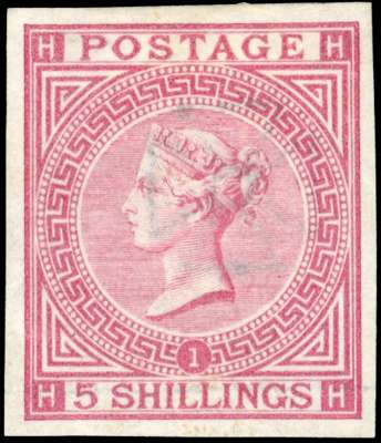 1867 5s rose Plate 1 (HH), imperforate imprimatur, mint large part o.g. wonderful colour. SG 126var cat £18,000