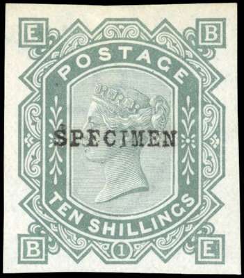 Great Britain 1883 10s Grey green Pl.1 imperforate imprimatur SG131var