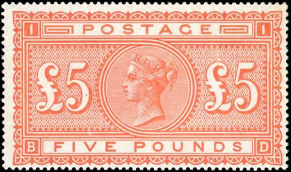 GB: 1867-83 £5 orange, white paper (BD), mint unmounted og