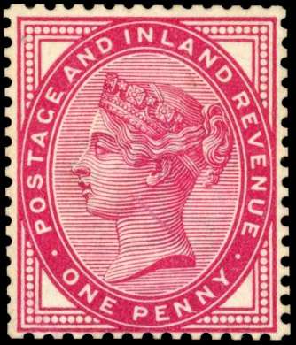 1881 1d lilac colour trial printed in carmine on perforated, gummed "Crown" watermarked paper. Very scarce. SG 172var cat £3,000.