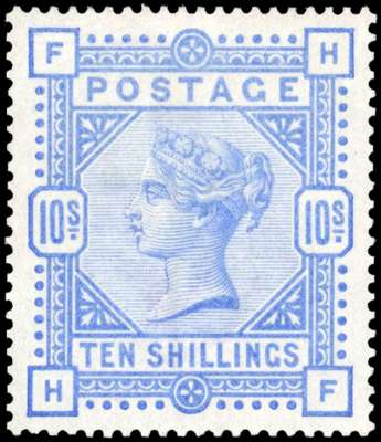 1883-84 10s ultramarine (HF), mint large part o.g. with excellent colour and centering, fine. SG 183 cat £2,250