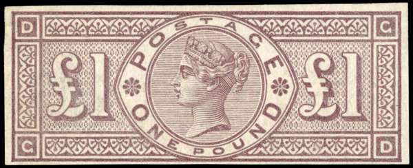 Great Britain 1884 £1 Brown-lilac Pl.2 (GD), imperforate imprimatur SG185var