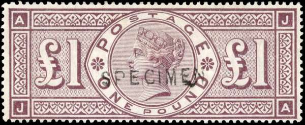 GB: 1888 wmk Three Orbs, £1 brown-lilac (JA), mint large part og overprinted ‘SPECIMEN’ (type 11)