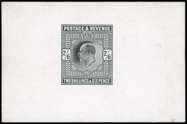 1901 2s6d die proof in black on glazed card (92x60mm), without endorsements, fine and scarce. SG 260var cat £4,000