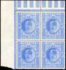 GB: 1902-10 10s deep ultramarine, mint unmounted og upper left corner block of four