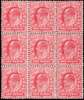 1911 Harrison 1d carmine, perf 15x14, mint large part o.g. (two mounted the rest unmounted) in block of nine (3x3) in an unusual pale shade, fresh. Hendon Stamp Company (2024) stating ‘pale carmine’. SG 274 var, Spec M7(7)