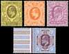 1911 Harrison, perf 15x14, 3d dull reddish purple on lemon, 4d deep bright orange, 1911-13 Somerset House 6d Royal purple, 9d deep plum and blue; all mint unmounted o.g. Fine. SG 285 var, 286 var, 295, 307a