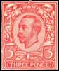 1911 3d Engravers Sketch Die for the unissued value, cut down die proof used as a colour trial printed in rose red on thick white paper, using the die 2 head with shaded background to head and upper corners solid. Rare. See specialised Vol.2 catalogue pg.91, fig. 23b.