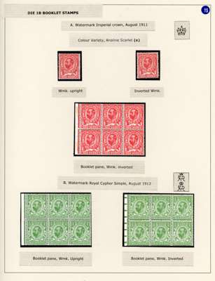 1911-12 watermark Crown, Die 1B, mint selection comprising ½d yellow-green booklet panes of six, upright and inverted watermarks, 1d aniline scarlet, inverted and upright watermarks, both with RPS Certificates (1990) and scarlet booklet pane of six watermark inverted. Large part o.g. SG 324/Wi, 332Wi/333/Wi