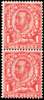 GB: 1912 wmk Crown, Die 2, 1d aniline scarlet, mint unmounted og vertical pair, top stamp showing ‘NO CROSS ON CROWN’ variety