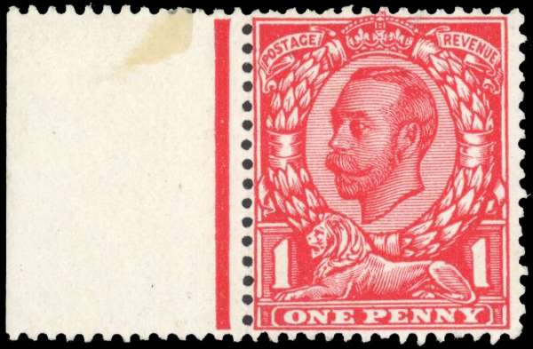 1912 watermark Simple Cypher 1d scarlet, Die 2, unmounted o.g. left marginal example without watermark. Fine. SG 345 var, Spec N12a