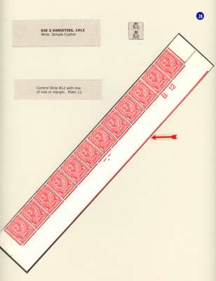 1912 Die 2 mainly mint selection, mostly varieties, neatly arranged on album pages including watermarks with inverted, reversed, controls, etc. Also 1d on cover with ‘NO CROSS ON CRWON’ variety and a lower delivery Coil leader (F) 500 1d. stamps. Mostly fine