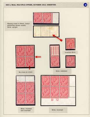 1912 redrawn Die ½d and 1d mint collection neatly arranged on album pages including ½d imperfs with a pair and a block of four, range of varieties with ‘NO CROSS ON CROWN’ range of controls and shades, etc. An interesting lot. Generally good to fine. (hundreds)