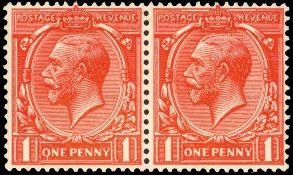 GB: 1912-24 1d deep scarlet, mint pair with ‘Q’ for ‘O’ (control T22, R 4/11)