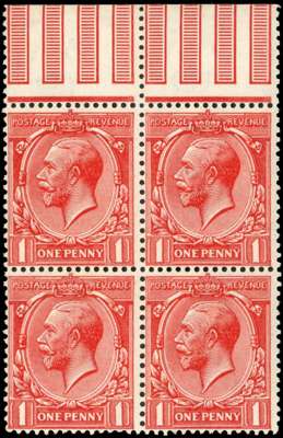 GB: 1912-24 1d deep brick-red, mint marginal block of four