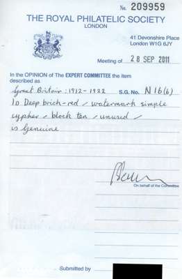 1912-24 Royal Cypher 1d deep brick-red, mint unmounted o.g., top marginal block of four with fine colour. Attractive. Photocopy of RPS Certificate (2011) as an irregular block of ten. SG 358 var, Spec N16(6)