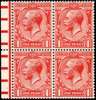 GB: 1912-24 1d deep bright brick-red, mint ex-booklet pane marginal block of four