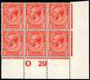 GB: 1912-24 1d deep bright vermilion, mint control O20 block of six