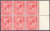 GB: 1912-24 1d carmine, mint marginal block of six