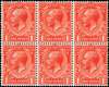 GB: 1912-24 Royal Cypher 1d deep orange-vermilion, mint unmounted block of six