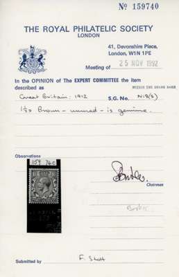 1912-24 Royal Cypher 1½d brown, mint, large part og. Fresh appearance. A popular and scarce shade. RPS Certificate (1992). SG 363 var, N18(8)