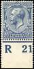 1912-24 Royal Cypher 2½d dull Prussian blue, mint large part o.g. control R21 marginal single with lovely deep colour. Slightly short perf at top. Rare. Hendon Stamp Company opinion. SG 373a, Spec N21(17)