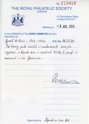 GB: 1912-24 Royal Cypher 3d very pale violet, mint unmounted/large part og, lower left corner control H16 block of six